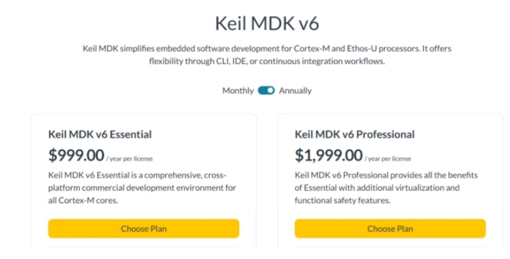 Keil MDK于2023年開始在全球范圍內(nèi)逐步停止永久授權(quán),2025年第三季度在中國完全停售永久授權(quán),意味著國內(nèi)用戶只能選用訂閱制,而中國市場的“非透明”定價可能進(jìn)一步增加了用戶的長期使用成本。