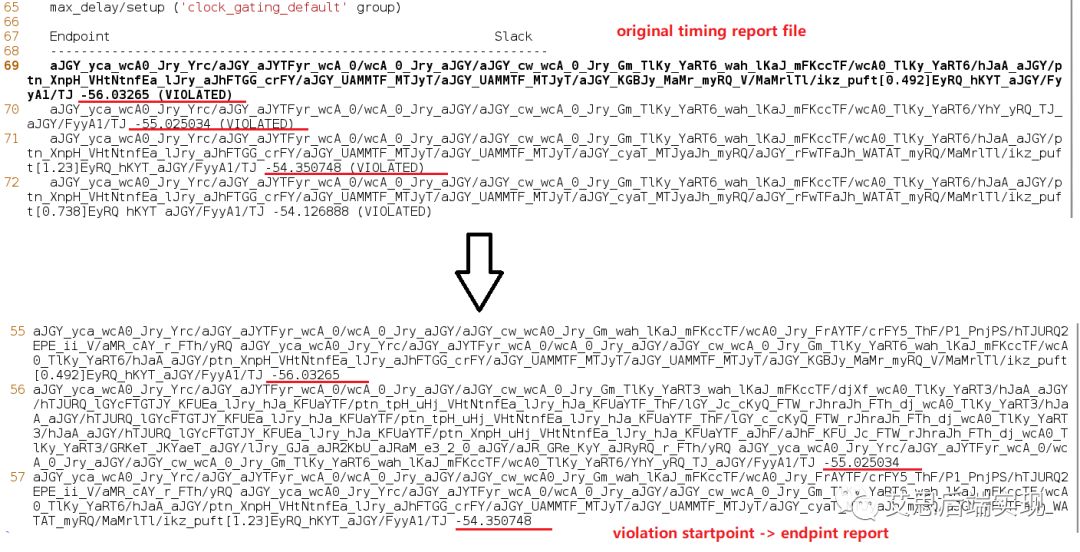 這時候,可能需要抽取出所有violation對應(yīng)的startpoint,下邊的這個腳本就可以快速的實現(xiàn)這個功能: