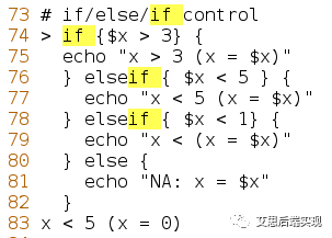 測試表達式,為真則執(zhí)行命令,更加完備的格式是if-elseif-else 方式。當(dāng)然,和其他高級語言一樣,使用非完備格式從語法上講,是沒有任何問題的,但是設(shè)計者應(yīng)該有策略保證表達式不被滿足的情形。