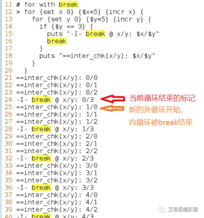 可以通過它們,去干預(yù)內(nèi)部循環(huán)細節(jié),這個可以增加腳本的靈活性,break的示例如下:
