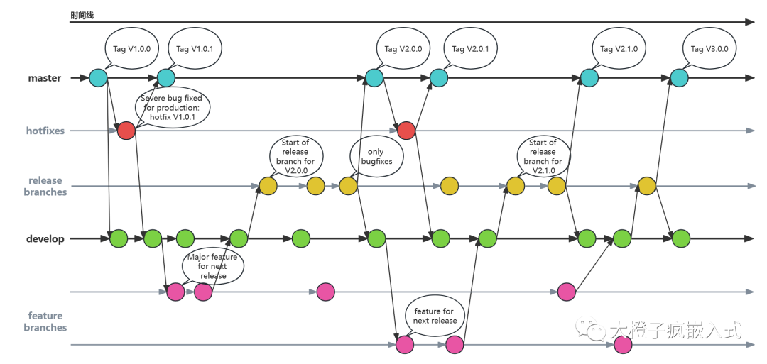 借用網(wǎng)上一張經(jīng)典的分支工作流程圖: