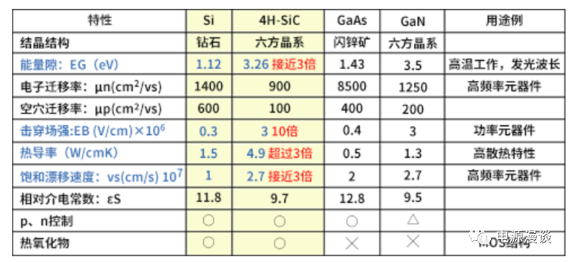 圖3寬禁帶材料及傳統(tǒng)硅材料特性對(duì)比
