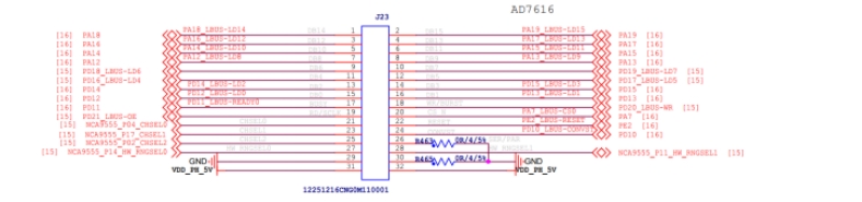 · 引腳一一對(duì)應(yīng):AD7616模塊通過(guò)J23接口直連開(kāi)發(fā)板