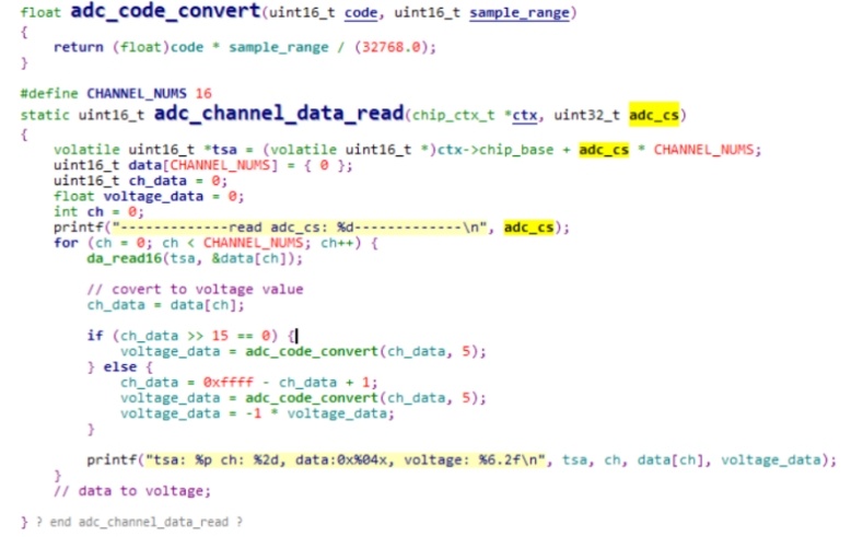 結(jié)合上面寄存器分析,量程處理代碼比較隨意,應(yīng)該要把2.5V,5V,10V 用宏控制,并和量產(chǎn)轉(zhuǎn)換形成對(duì)于關(guān)系。