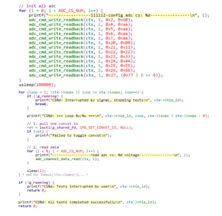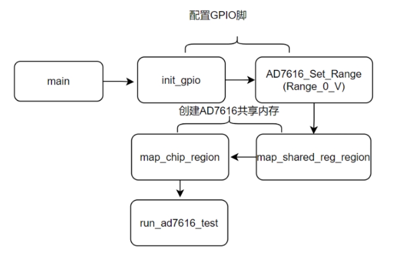 run_ad7616_test 測(cè)試代碼關(guān)鍵,它一共分兩部分,初始化寄存器和讀數(shù)據(jù)。