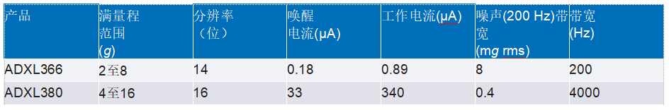 表1.超低功耗加速度計(jì)與超低噪聲加速度計(jì)的并排比較