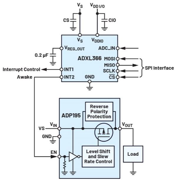 圖4.ADXL366配置為物聯(lián)網(wǎng)系統(tǒng)中的運(yùn)動(dòng)開(kāi)關(guān)
