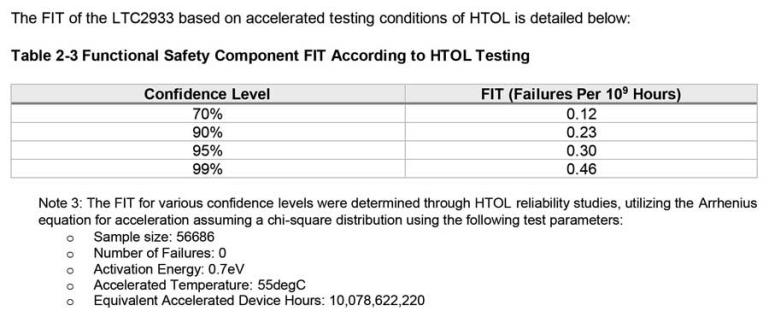 圖4.根據(jù)LTC2933安全應(yīng)用筆記,基于Arrhenius HTOL的FIT