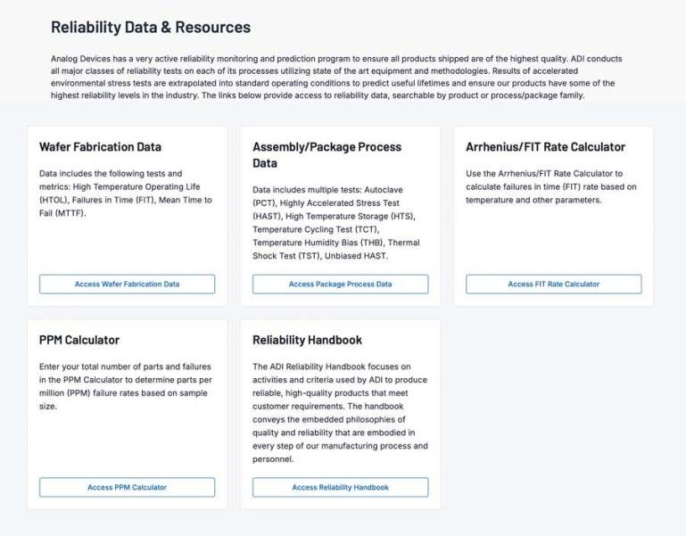 圖2.ADI可靠性數(shù)據(jù)和資源