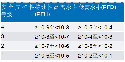 注:當(dāng)需求率為每年一次時(shí),PFD指標(biāo)和PFH指標(biāo)等效。