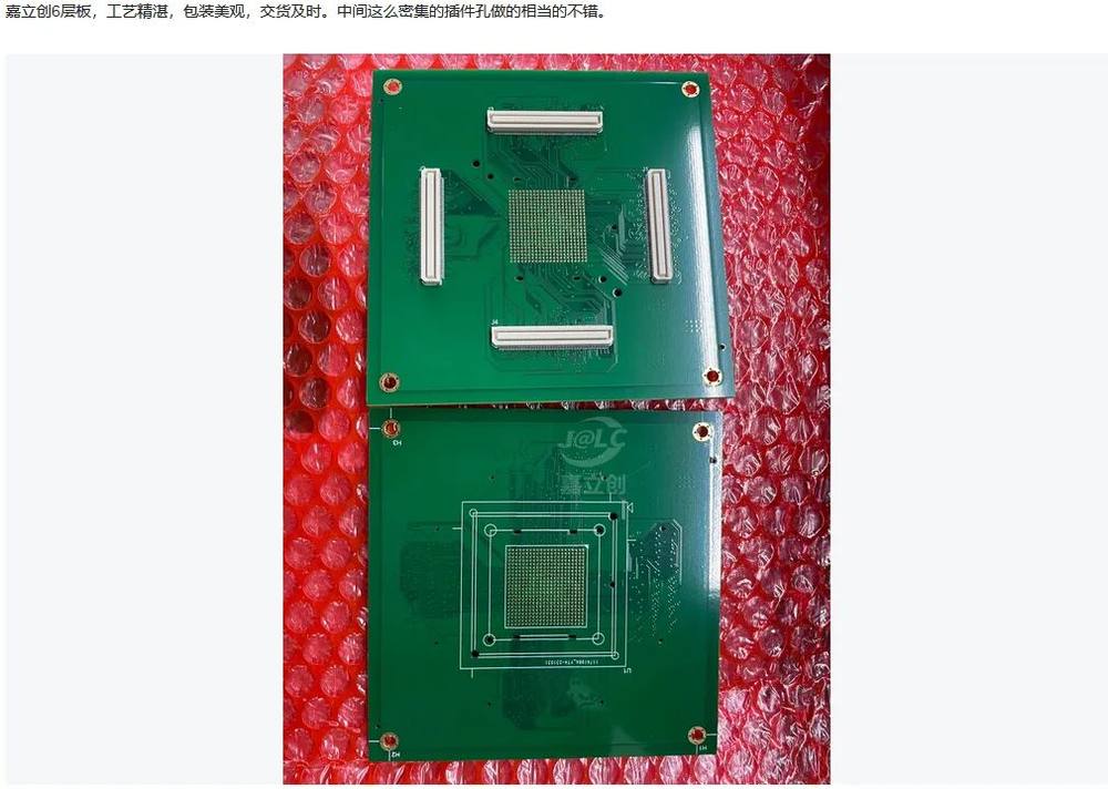 高品質的工藝直接反映在終端客戶的使用體驗中。有工程師反饋,“嘉立創(chuàng)6層板,工藝精湛,包裝美觀,交貨及時。中間這么密集的插件孔做的相當的不錯?!?