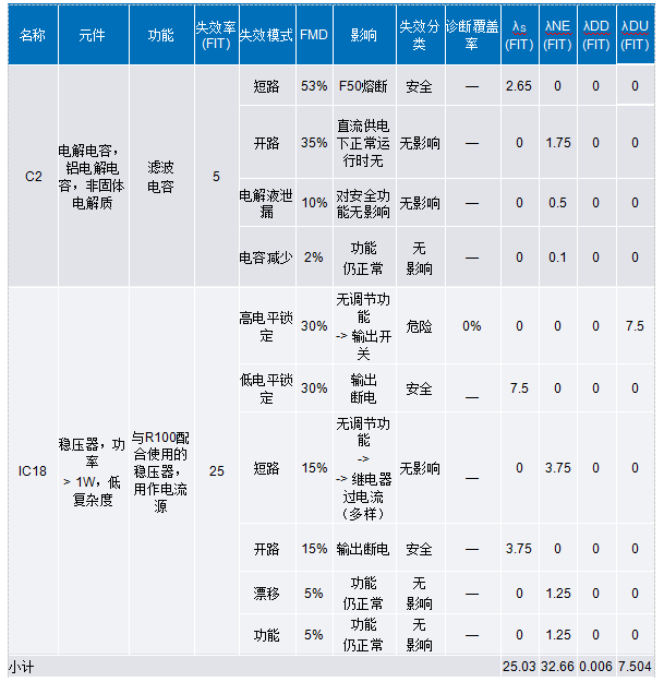 表1.電源電路的FMEDA分析(基于IEC 60812:2018 標(biāo)準(zhǔn)表F.12)