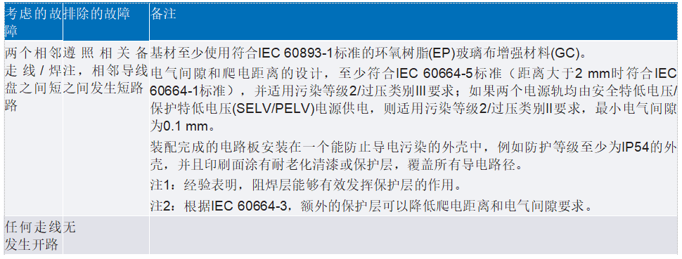 印刷電路板(PCB)也包括在技術(shù)安全分析中。ISO 13849-2:2012針對PCB的故障(失效模式)及其排除項(xiàng)給出了建議。根據(jù)該標(biāo)準(zhǔn),在某些特定考量(如表2“備注”欄中所列)下,可以排除部分假設(shè)的失效模式。