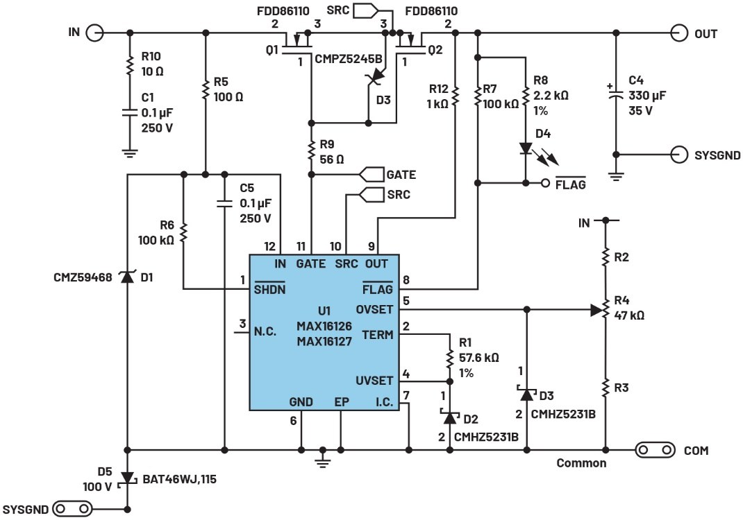 圖1.過壓/反向電壓保護電路
