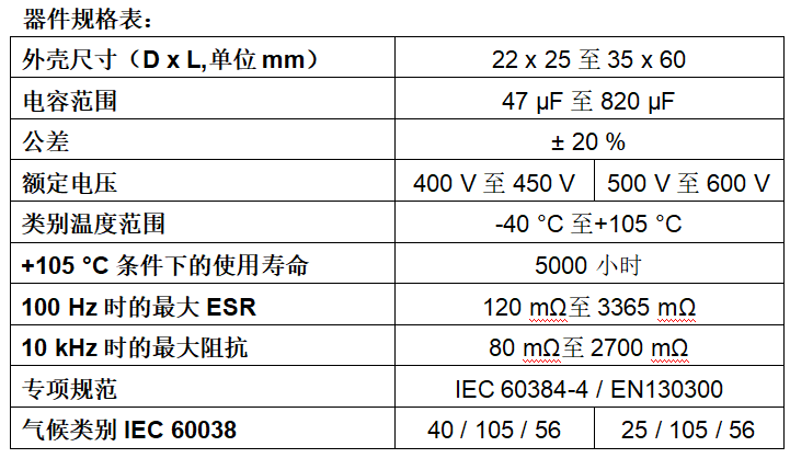 作為采用非固態(tài)電解質的有極性的鋁電解電容器,該產品系列特別適用于開關電源中的濾波、穩(wěn)壓及DC-Link功能;終端應用涵蓋充電機,BMS,電動汽車(EV)和混合動力汽車(HEV)的電機驅動、;工業(yè)電機驅動和空調設備;太陽能逆變器;醫(yī)療設備;不間斷電源(UPS);以及焊接設備。