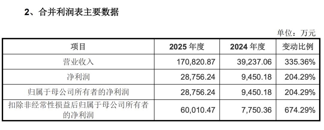 宇樹科技披露的招股說明書顯示,2025年,宇樹科技實(shí)現(xiàn)營業(yè)收入17.08億元,同比增長335.36%;實(shí)現(xiàn)扣非凈利潤超6億元,同比增長674.29%,主要原因?yàn)楫?dāng)期產(chǎn)品銷量快速增長。