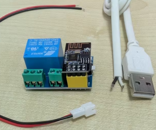 我的研究最終選擇了市場(chǎng)上最簡(jiǎn)單的選項(xiàng)之一——ESP-01/ESP-01S 中繼模塊,這是一個(gè)整體結(jié)構(gòu)相對(duì)緊湊的裝置,集微控制器和繼電器于一體(幾乎無(wú)需焊接)。只要為其提供 5 伏直流電源(例如來(lái)自我車(chē)載手機(jī)充電器的 USB-A 接口),我就能通過(guò)簡(jiǎn)單的代碼草圖來(lái)控制電路(注意:ESP-01/ESP-01S 需要單獨(dú)取出并使用編程器進(jìn)行編程)。將一個(gè) JST 2 針連接器(輸出端)用作與控制臺(tái)按鈕的連接接口。