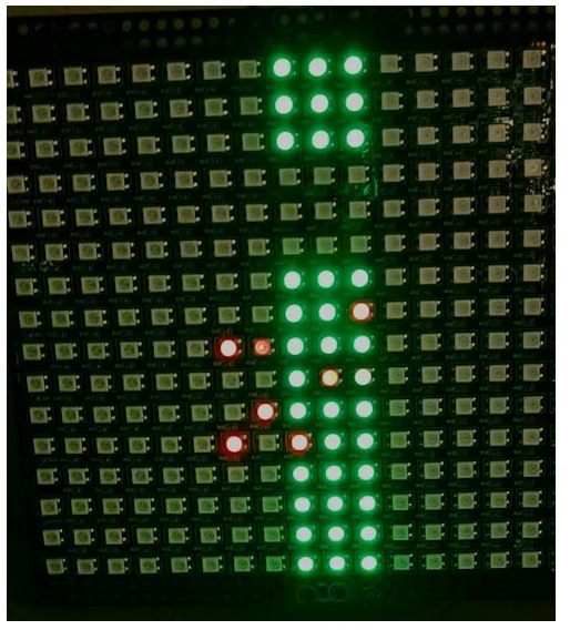 [導(dǎo)讀]僅僅依靠一個(gè) LED 顯示屏來(lái)開發(fā)一款類似《飛鳥跳躍》的游戲,難度會(huì)有多大呢?我們起初使用的是一個(gè)標(biāo)準(zhǔn)的 16x16 的 LED 屏幕,但我們認(rèn)為增加游戲的寬度會(huì)讓它更具趣味性。