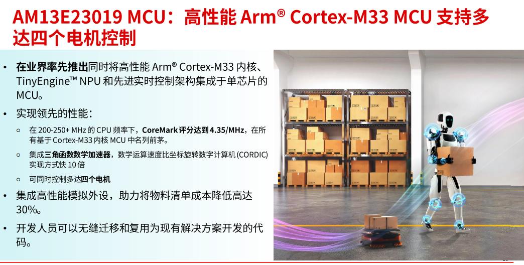 而通過AM13Ex的能力,對于客戶的采購策略也由此轉(zhuǎn)向“平臺化選型”——同一MCU系列即可覆蓋從簡單控制到AI增強的多個產(chǎn)品線,簡化供應(yīng)鏈管理并提升規(guī)模采購的議價空間。