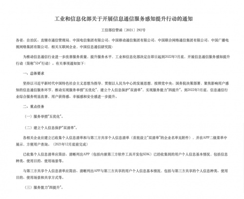 圖1:《工業(yè)和信息化部關(guān)于開展信息通信服務(wù)感知提升行動(dòng)的通知》