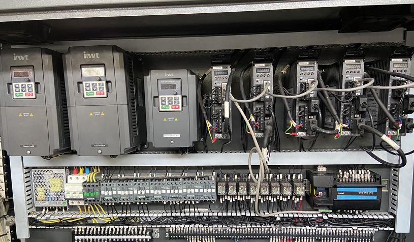 英威騰縱切機(jī)電氣系統(tǒng)解決方案使用優(yōu)化的排刀飛剪橫切等程序算法,采用CANopen高速工業(yè)總線通訊,完美的實(shí)現(xiàn)了快速回原、高效定位、精準(zhǔn)排刀、安全保護(hù)等關(guān)鍵性能,系統(tǒng)回原功能更強(qiáng)大,定位更準(zhǔn)確,布線更美觀,性能更穩(wěn)定。