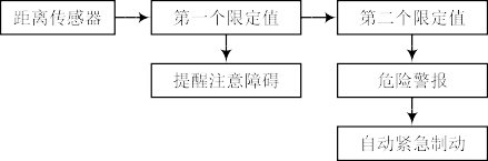 當(dāng)小車(chē)上的距離傳感器測(cè)得的距離到達(dá)障礙第一個(gè)限定值時(shí),小車(chē)上的危險(xiǎn)指示燈閃爍做出危險(xiǎn)警告 ;當(dāng)測(cè)得的距離到達(dá)第二個(gè)限定值時(shí),系統(tǒng)自動(dòng)采取緊急制動(dòng)措施 [7]。終端也能夠自主分析接收到的數(shù)據(jù),根據(jù)不同的情況,手機(jī)屏幕顯示相關(guān)危險(xiǎn)信息內(nèi)容,并做相應(yīng)的語(yǔ)音提示。DS18B20 測(cè)距及報(bào)警流程如圖 1 所示。
