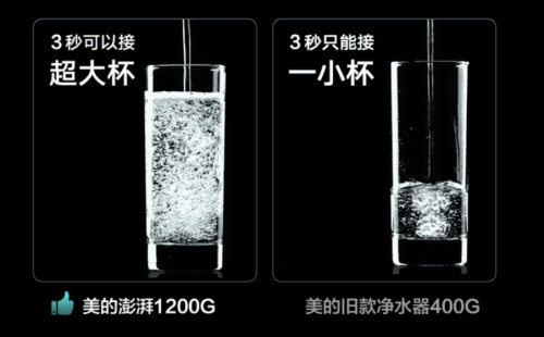 相信很多正在選購凈水器的消費者會看到,凈水器還有不同的通量,有100G和400G等等。實際上,大流量凈水機出水速度更快,而美的澎湃1200G凈水機配備有1200G超大通量,3秒鐘的時間就能接滿一大杯水。如果你想節(jié)省時間、提升生活品質(zhì),這款美的凈水器會是不錯的選擇。