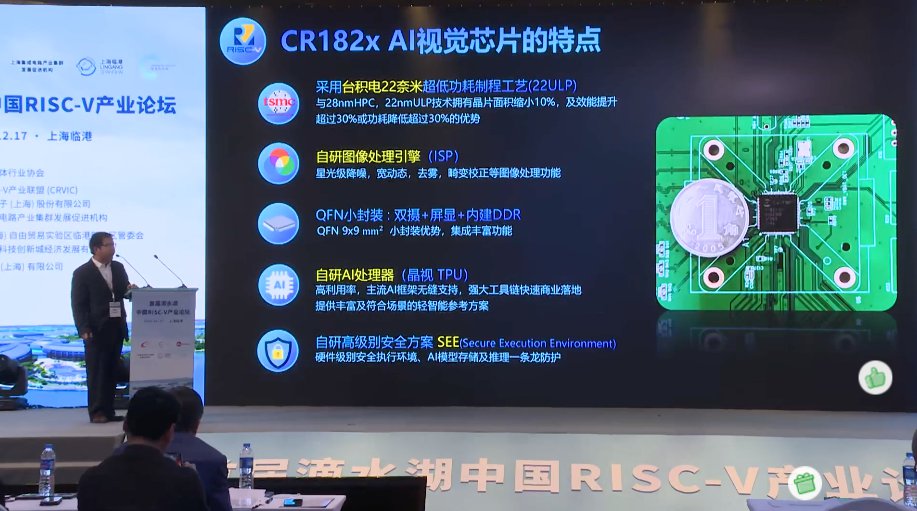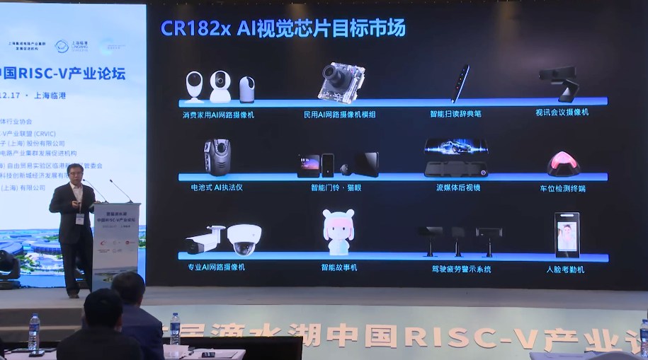 2021年12月17日,在中國RISC-V產(chǎn)業(yè)聯(lián)盟、芯原微電子和上海集成電路產(chǎn)業(yè)集群發(fā)展促進(jìn)機構(gòu)共同主辦的首屆“滴水湖中國RISC-V產(chǎn)業(yè)論壇”上,北京晶視智能科技有限公司COO黃群輝向業(yè)界介紹了其將于明年3月發(fā)布的AI視覺芯片——CR182x。