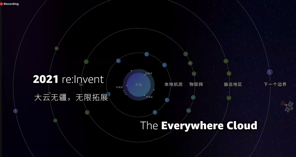 為了實現(xiàn)這些無限拓展的需求,亞馬遜云科技提供了多種不同的服務(wù):例如WaveLength可以將云拓展到5G網(wǎng)絡(luò)的邊緣,Local Zone把云拓展到靠近人口中心的城市,Outposts把云拓展到客戶自己的數(shù)據(jù)中心,Cloud WAN為客戶提供私有網(wǎng)絡(luò)控制,Snowball產(chǎn)品把云拓展到弱網(wǎng)環(huán)境...甚至Ground Station這樣的托管衛(wèi)星地面站服務(wù),已經(jīng)可以將云的邊界拓展到太空。