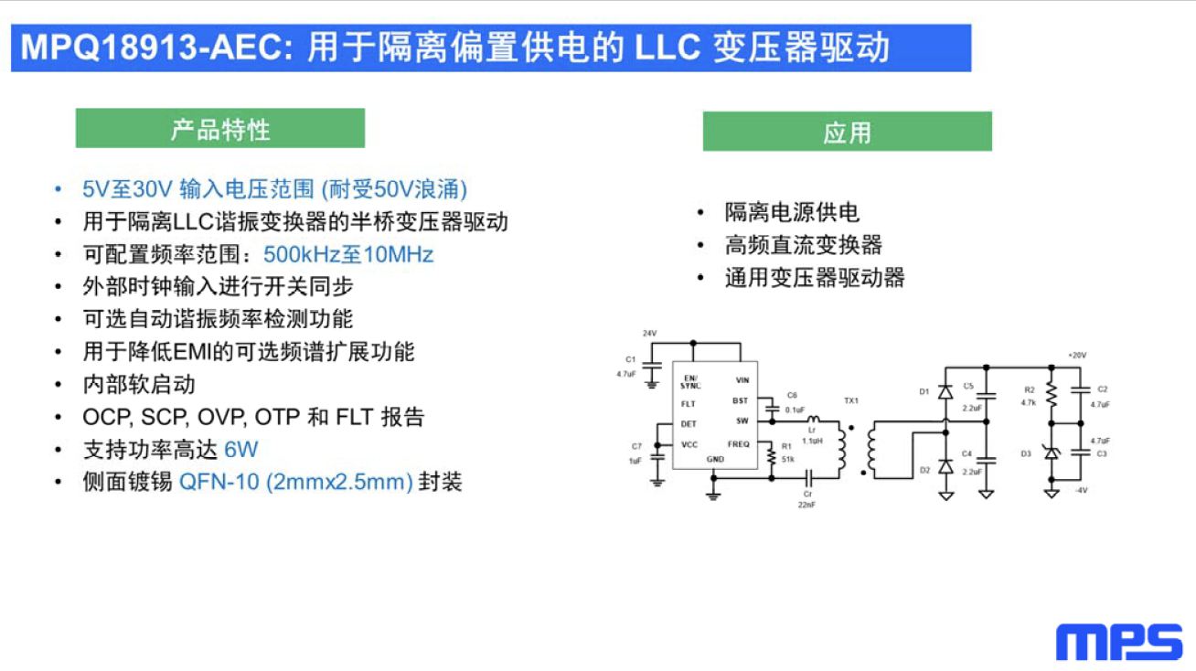 變壓器驅(qū)動和模塊:MPQ18913-AEC