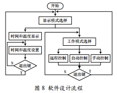 軟件設(shè)計(jì)流程主要包括時(shí)間溫度顯示、工作模式選擇及相應(yīng)的控制程序。其軟件設(shè)計(jì)流程如圖 8 所示。