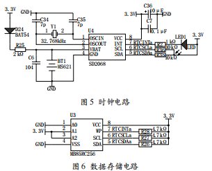 采樣高精度時(shí)鐘電路 SD2068,用來保存數(shù)據(jù)的時(shí)間和進(jìn)行時(shí)間流量等比例采樣等使用。時(shí)鐘電路如圖 5 所示。