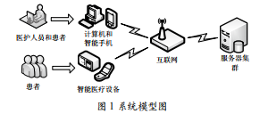 本系統(tǒng)用戶端使用B/S架構(gòu)(瀏覽器/服務(wù)器)開發(fā)。對(duì)于B/S架構(gòu)來說,只要是有網(wǎng)絡(luò)的地方,就可以通過計(jì)算機(jī)、智能手機(jī)和其他終端隨時(shí)掌握患者的信息。圖1所示是本系統(tǒng)的整個(gè)模型圖。
