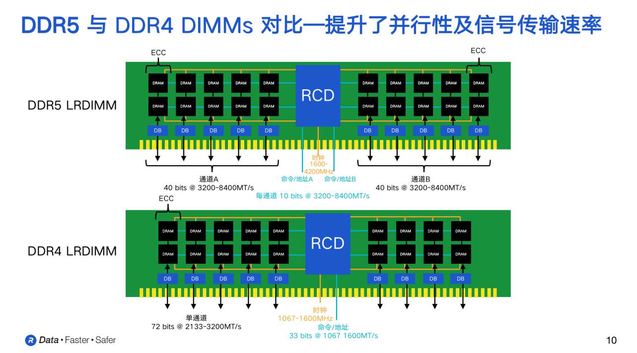 通過(guò)諸多的創(chuàng)新 ,DDR5實(shí)現(xiàn)了4.8~8.4Gbps的數(shù)據(jù)傳輸速率,實(shí)現(xiàn)了更高的帶寬、更高的內(nèi)存效率、更低的延時(shí)和更低的功耗。這種創(chuàng)新的DIMM架構(gòu)也需要RCD的支持,所以Rambus也適時(shí)推出了其第二代的RCD產(chǎn)品,來(lái)助力DDR5在數(shù)據(jù)中心的應(yīng)用。