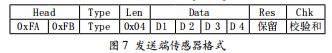 本設(shè)計的發(fā)送端傳感器格式(byte1-byte10)如圖7所示。