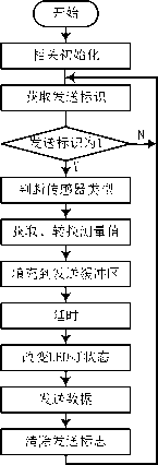 信息感測節(jié)點應(yīng)用程序?qū)鞲衅鳒y量值的獲取、轉(zhuǎn)換、緩存及無線發(fā)送功能可采用如圖4所示的程序流程來實現(xiàn)。