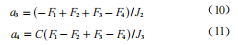 式中 Ki 表示阻尼系數(shù),因?yàn)樽枇Ξa(chǎn)生的影響極小,所以阻力忽略不計(jì)。由此可以定義4 個(gè)輸入為: