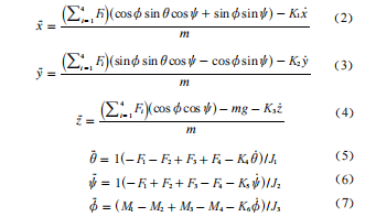 上式表達(dá)了輸入與輸出之間的關(guān)系,程序設(shè)計(jì)基于以上 物理推導(dǎo)編寫(xiě)。通過(guò)改變電機(jī)轉(zhuǎn)速?gòu)亩淖僃1,F(xiàn)2, F? F4, 由式(12)?(17)可以得到旋翼飛行器的6個(gè)自由度。
