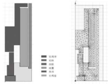 圖2微型氣動(dòng)高壓電磁閥2D模型及網(wǎng)格劃分圖