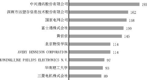 排名前三位的均是中國(guó)企業(yè),說(shuō)明在RFID技術(shù)方面中國(guó)企業(yè)是研發(fā)和專利保護(hù)的主力軍。四個(gè)外國(guó)企業(yè)分別為2個(gè)日本企業(yè),1個(gè)美國(guó)企業(yè)和1個(gè)歐洲企業(yè),說(shuō)明外國(guó)企業(yè)十分重視RFID技術(shù)在中國(guó)的專利布局,在RFID技術(shù)方面外國(guó)企業(yè)的實(shí)力不容小覷。對(duì)于亞洲國(guó)家而言,日本在RFID技術(shù)方面具備較強(qiáng)的優(yōu)勢(shì)。同時(shí)高校已開始對(duì)RFID技術(shù)研發(fā)和專利保護(hù)進(jìn)行有益的探索,并且取得了較好的成績(jī)。
