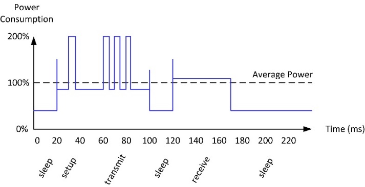 圖 4:支持 WLAN 微控制器的典型電流消耗曲線