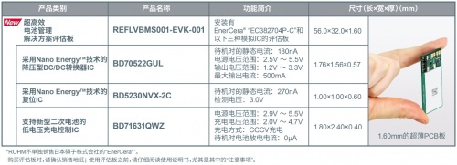 在本解決方案中,搭載超低靜態(tài)電流技術(shù)“Nano Energy”的電源IC可以更大程度地降低應(yīng)用產(chǎn)品電源部分的功耗,同時(shí),支持各種二次電池的充電控制IC可為各種二次電池提供相匹配的充電。