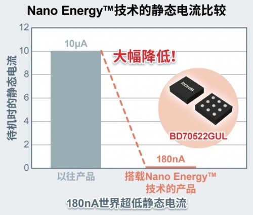 Nano Energy是以物聯(lián)網(wǎng)領(lǐng)域的關(guān)鍵詞“紐扣電池十年驅(qū)動(dòng)”為目標(biāo),在ROHM的垂直統(tǒng)合型生產(chǎn)體制下,凝聚“電路設(shè)計(jì)”、“布局”和“工藝”三大先進(jìn)模擬技術(shù)優(yōu)勢(shì)而實(shí)現(xiàn)的超低靜態(tài)電流技術(shù)。