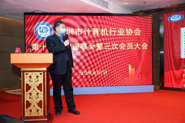 深圳市計(jì)算機(jī)行業(yè)協(xié)會(huì)執(zhí)行會(huì)長(zhǎng)杜和平做理事會(huì)工作報(bào)告