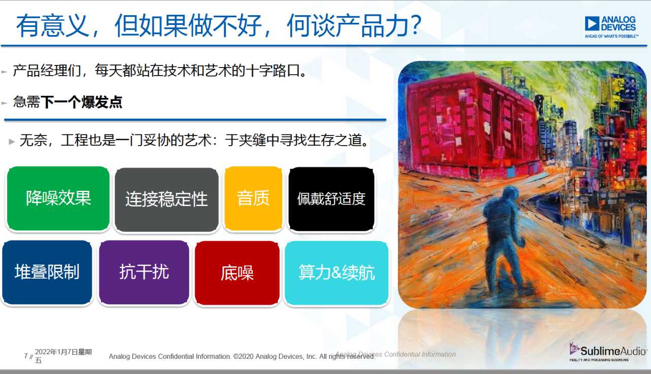 當(dāng)前可穿戴等消費(fèi)電子設(shè)備功能愈發(fā)復(fù)雜,之前在專業(yè)的設(shè)備上高不可攀的功能,已經(jīng)在大眾消費(fèi)電子設(shè)備上得以搭載和普及。這些專業(yè)技術(shù)在消費(fèi)端的下沉和普及,面臨著諸多的挑戰(zhàn)。在復(fù)雜多變的環(huán)境里,小體積的設(shè)備上,采集到精準(zhǔn)的數(shù)據(jù),然后實(shí)現(xiàn)數(shù)據(jù)的處理計(jì)算,同時(shí)還要保證消費(fèi)級(jí)功耗水平。針對(duì)這種需求,這需要芯片廠商提供全新的方案支持。ADI中國(guó)近日就發(fā)布了針對(duì)主動(dòng)降噪耳機(jī)和可穿戴醫(yī)療的全新芯片,從中國(guó)本土需求出發(fā)提供一流的應(yīng)用解決方案。