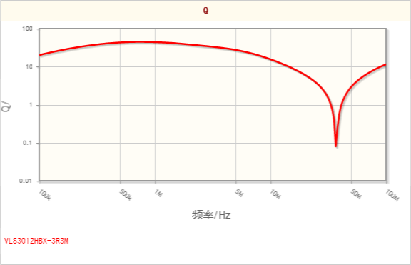 從以上計(jì)算公式可看出,電感的Q值是隨著信號(hào)頻率的變化而變化的,如下圖所示: