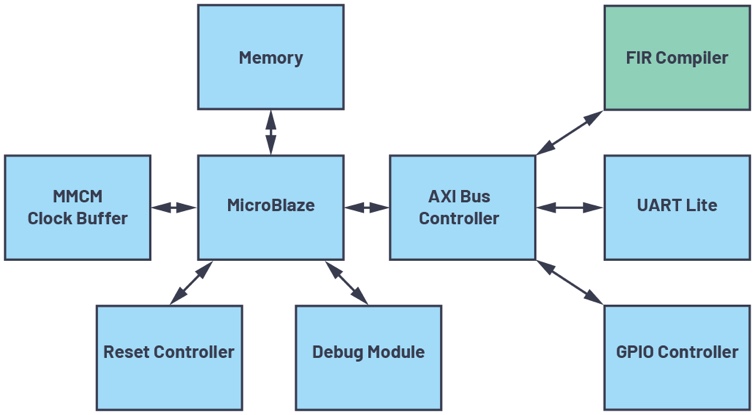圖10.具有一個FIR濾波器的MicroBlaze設(shè)計在FPGA中啟用以確定資源利用率