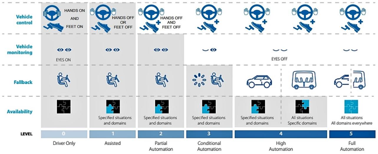 圖:SAE給出的六個自動駕駛級別