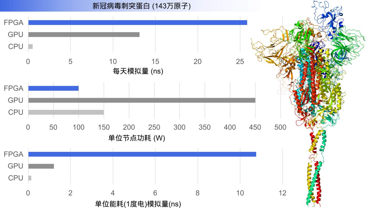 圖 2 –雪湖科技Yaddle MD FPGA分子動力學專用引擎與競爭解決方案相比,性能更高且能耗更低