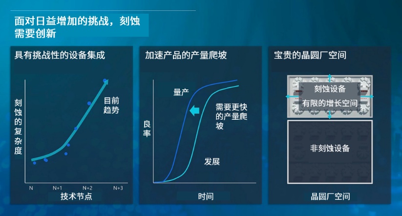 圖2:提高垂直縮放集成面臨的三重挑戰(zhàn),業(yè)務(wù)需要快速實(shí)現(xiàn)產(chǎn)品從研發(fā)到量產(chǎn),以及在有限的晶圓廠空間的運(yùn)營(yíng)條件下現(xiàn)實(shí)所需的顛覆性的刻蝕技術(shù)創(chuàng)新。